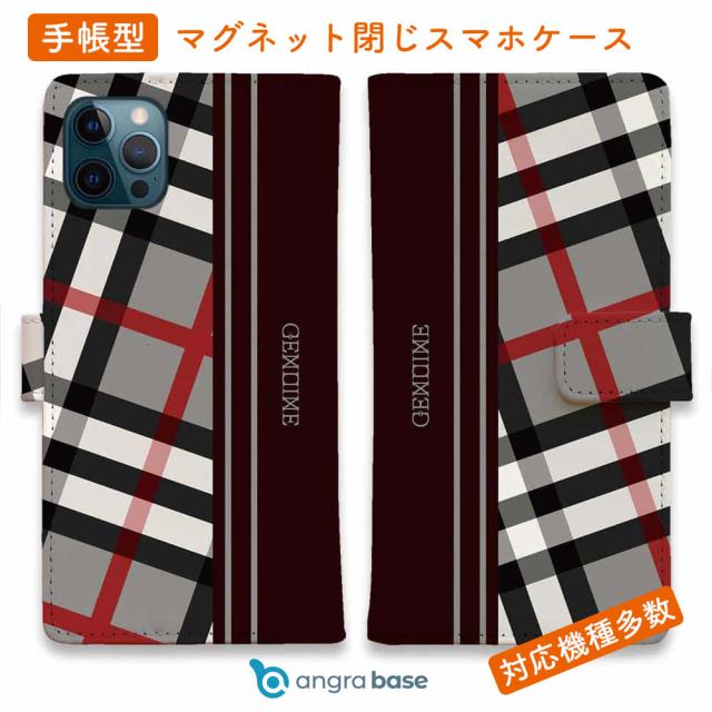 スマホケース 手帳型 カード収納 マグネット iPhone17 Pro Max iPhone Air iPhone16e iPhone16 Pro Max 16 Plus 15 Pro Max Xperia 10 VII Galaxy AQUOS ARROWS Pixel10 XL Genuine チェック柄 グレー&ブラウン