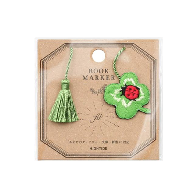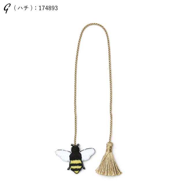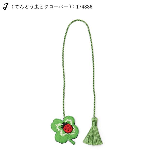 本をとじたときに見える刺繍のチャーム(飾り)のかわいさと、さり気なく上品な雰囲気のタッセルがアクセントのブックマーカー。刺繍のモチーフはすべて幸運を運ぶラッキーチャーム。ページを開くたびに幸せな気持ちにしてくれそうです。