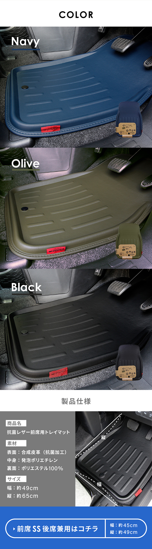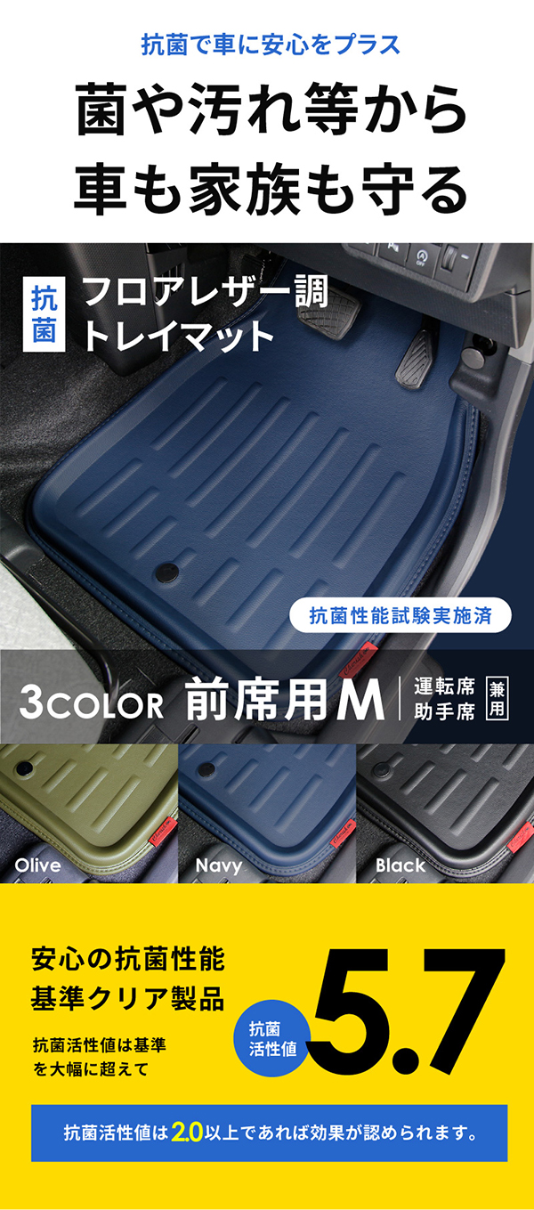 フロアマット 抗菌レザー 前席用Mサイズ 1枚 トレイマット ブラック ネイビー オリーブ