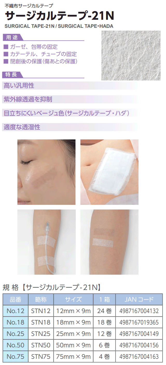 ガーゼ包帯固定・チューブカテーテル固定・傷あと保護・不織布テープ・紫外線透過抑制
