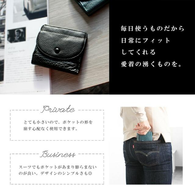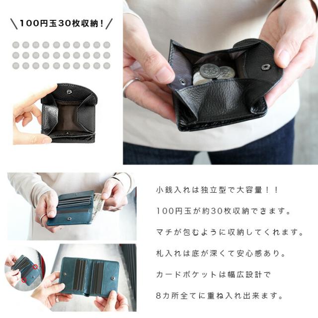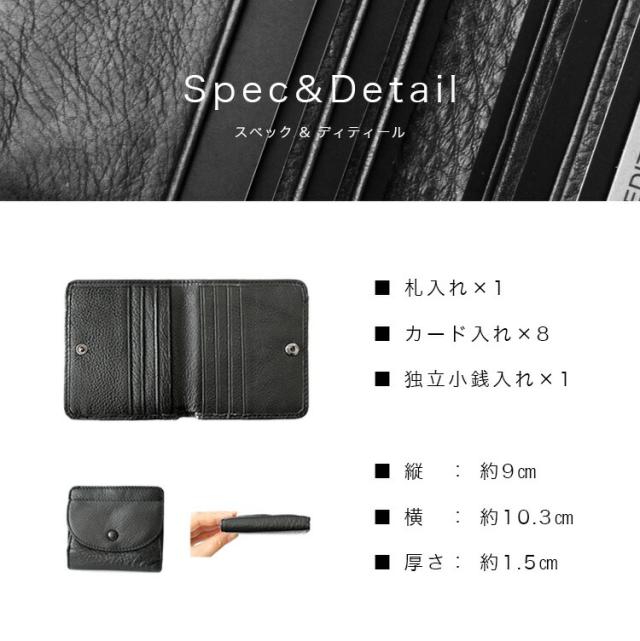 【商品説明】革ならではのシボ感が楽しめるシュリンクレザーを使用したミニウォレットです。柔らかく心地のいい手触りの牛革に必要な収納を最低限備えており、2つ折りタイプなのでコンパクトになりすぎずに丁度使い勝手のいいサイズ感となっています。薄くて軽いストレスレスな小さい財布です。