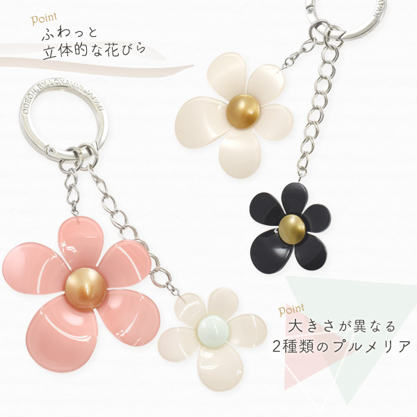 バッグチャーム キーホルダー プルメリアフラワー ふんわり おしゃれ お花 かばん カバン 鞄 キーホルダー 目印 飾り バックチャーム チャーム かわいい アクセサリー レディース ギフト プレゼント