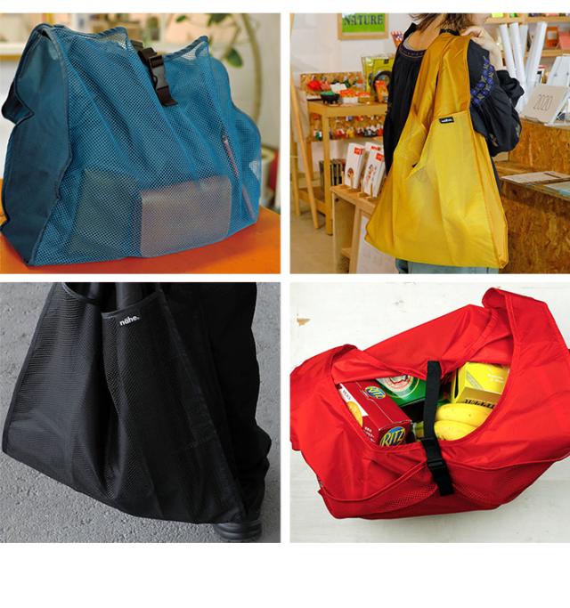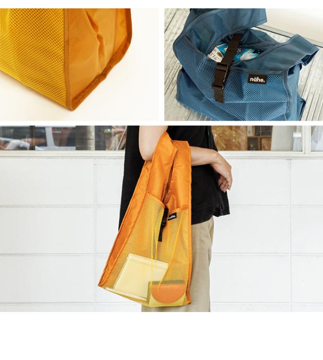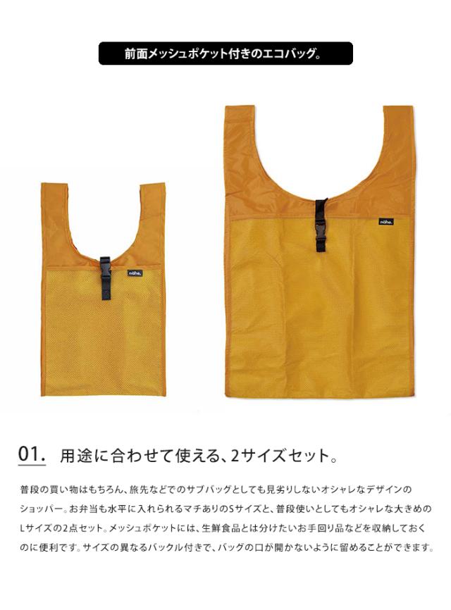 メール便 送料無料 nahe ネーエ ショッパー S L 2点セット 【 エコバッグ 折りたたみ マチ コンパクト レジ袋 メッシュ ユニセックス トート ミニ マイバッグ ショッピングバッグ シンプル 黒 ブラック】