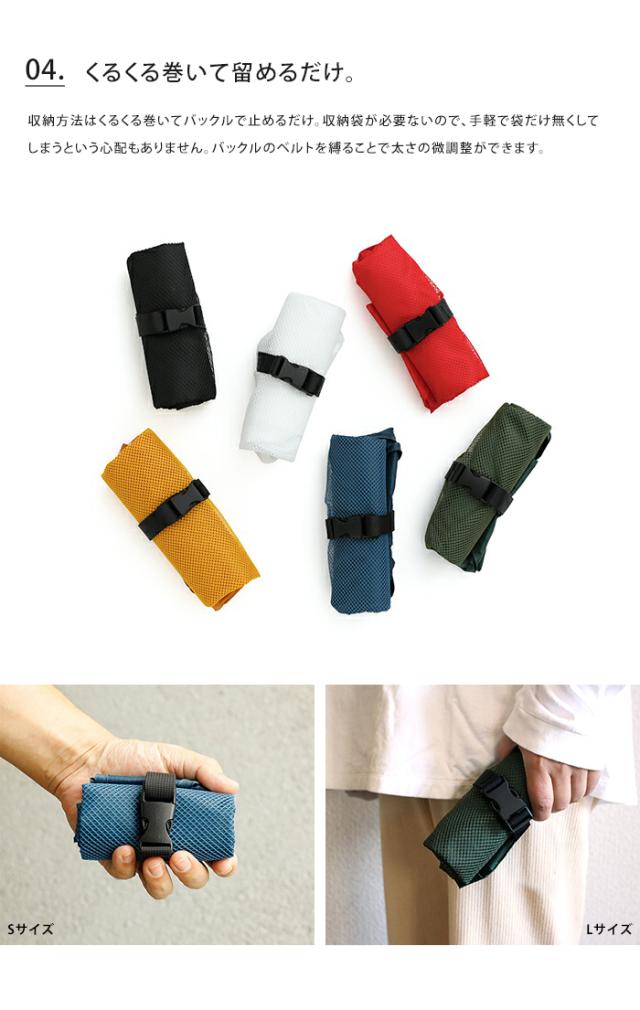 普段の買い物はもちろん、旅先などでのサブバッグとしても見劣りしないオシャレなデザインのエコバッグ。前面のメッシュポケットには、生鮮食品とは分けたいお手回り品などを収納しておくのに便利です。ベルトの長さが調整できるバックル付きでバッグの口が開かないように留めることができ、折りたたみ時の留め具にもなっています。収納袋が必要ないのでお手軽で袋をなくす心配もありません。ユニセックスでお使い頂けるので、ご家族やグループでのご使用にもオススメ◎エコバッグに抵抗のある方でも持ちやすいデザインです。