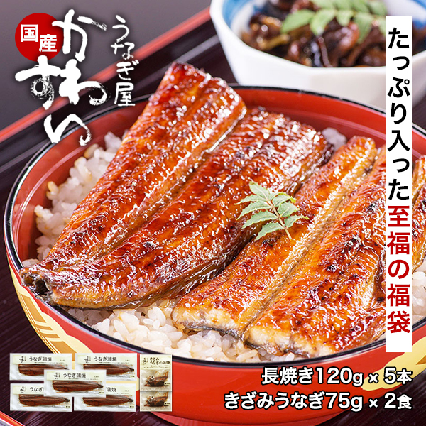 \14740円相当が12026円に/国産うなぎの福袋 新春 2026 国産 うなぎ 鰻 ウナギ 長焼き120g5本ときざみうなぎ2食 詰め合わせ 送料無料 たれ付き 山椒別売り 豪華 福袋 お得 超お得 超豪華