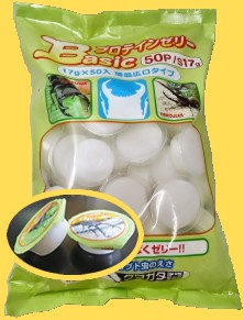 昆虫ゼリー17g 薄皿広口タイプクワガタのオスや大型のカブトムシでも食べ易い!!固め仕上げで液垂れし難いです!!▼内容量薄皿広口タイプ(ワイドカップ)17g×50個×24袋▼原材料ブドウ糖果糖液糖、砂糖、ゲル化剤(※カラギーナン、ローカストビーンガム)、クエン酸ナトリウム、クエン酸、色素、バナナフレーバー、水、たんぱく質、※カラギーナン(海藻抽出物)、ローカストビーンガム(マメ科の種子抽出物)◆梱包の都合上、ジッパー付袋(透明)になる場合がございます。※袋は選べません。