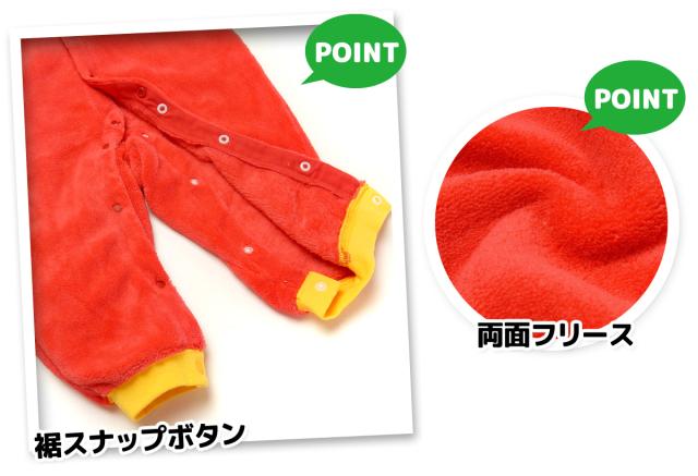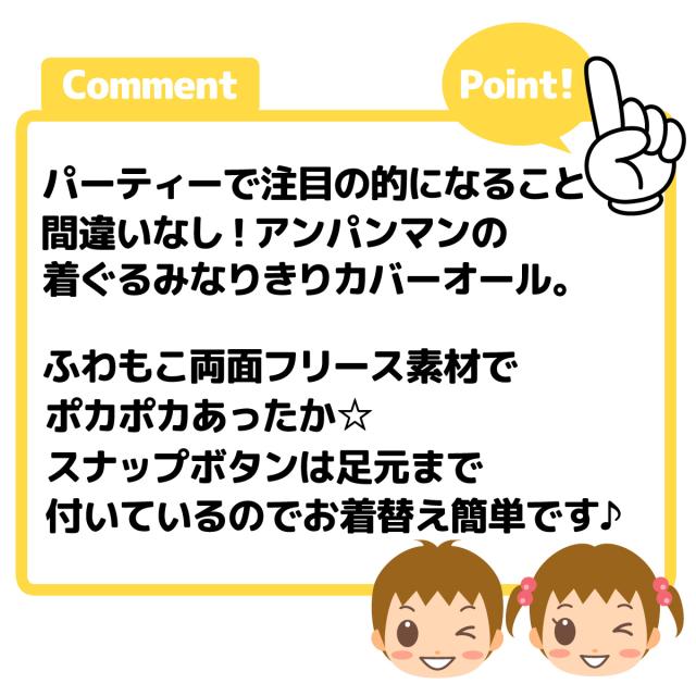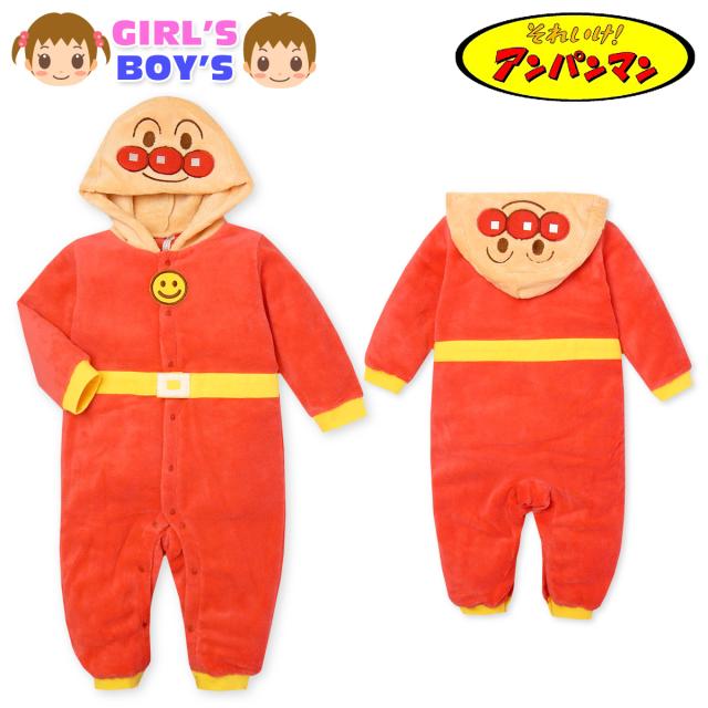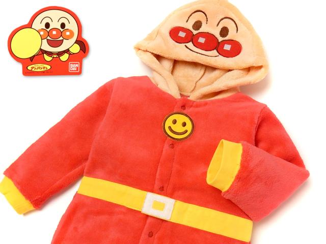 【送料無料】男児 女児 ベビー フリース 長袖 カバーオール アンパンマン あったか素材 なりきり 着ぐるみ 顔付きフード 前開きスナップボタン ベビー服 男の子 女の子 70cm 80cm 90cm iw-0069【メール便対応】