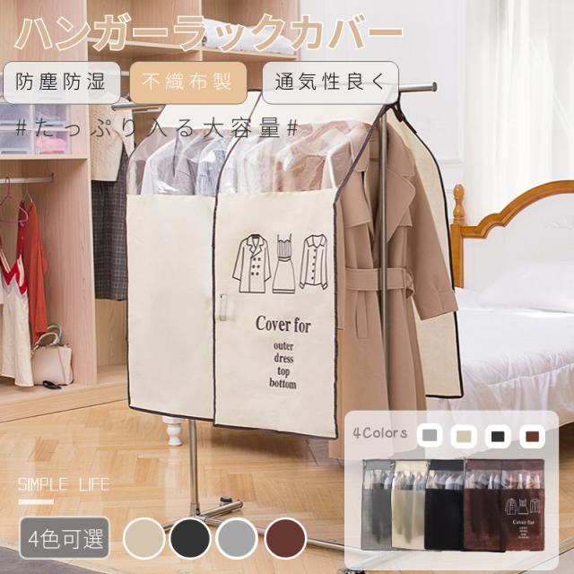 ハンガーラックカバー 不織布 パイプハンガーカバー おしゃれ 北欧 衣類収納 防塵 衣類カバー洋服カバー 押し入れ防塵カバー クローゼット用 まとめてカバー【B595】
