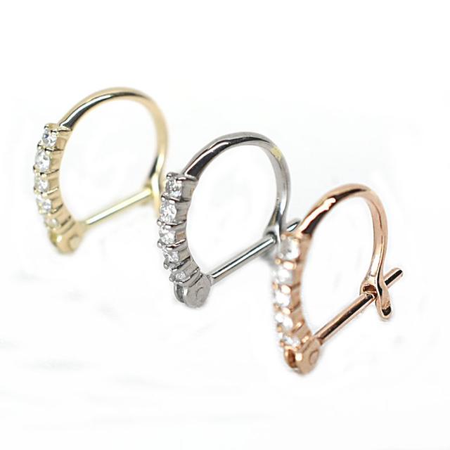 コメント: 片耳に5個の天然ダイヤを使用して合計0.1ctのハーフエタニティフープピアス