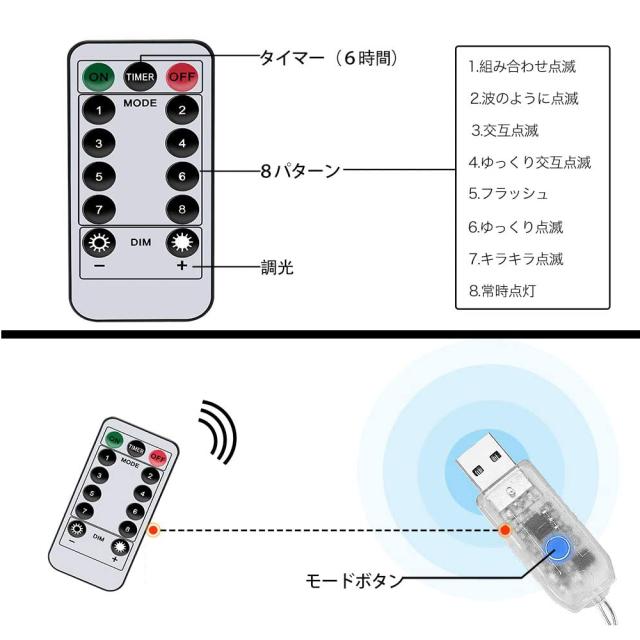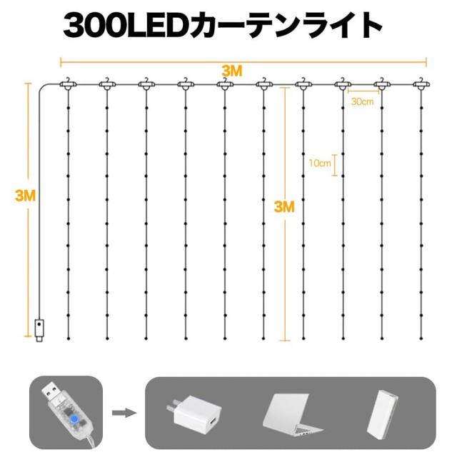 カーテンライト LED 2835チップ リモコン付き イルミネーションライト ストリングライト 300球 防水 USB式 8種 点灯モード クリスマス バレンタイン 新年 誕生日パーティー