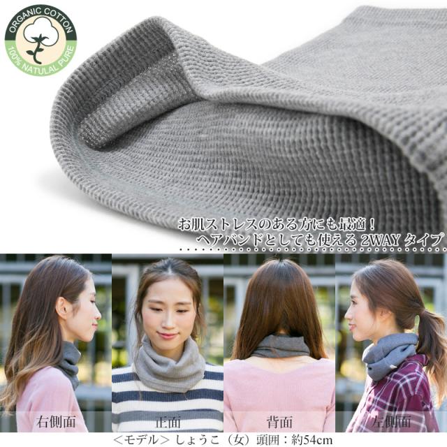オーガニックコットン100%の日本製生地を使用したZactionオリジナルのネックウォーマーです。化学繊維が苦手な人も心地よくお使いいだだけるのではないでしょうか。ワッフル生地なので伸縮性があり着脱が容易にでき、男性でも女性でも使いやすい色展開にしました。長いまま無造作に被ったり、二つ折りにしてスッキリした見栄えで被ったりと被り方にアレンジも可能!ヘアバンドとしても使える2WAY仕様です。天然コットンの素材感を直接お肌で実感してみてください。※当店が取り扱うオーガニックコットン製品は、オーガニックコットン100%の生地のみを使用しています。