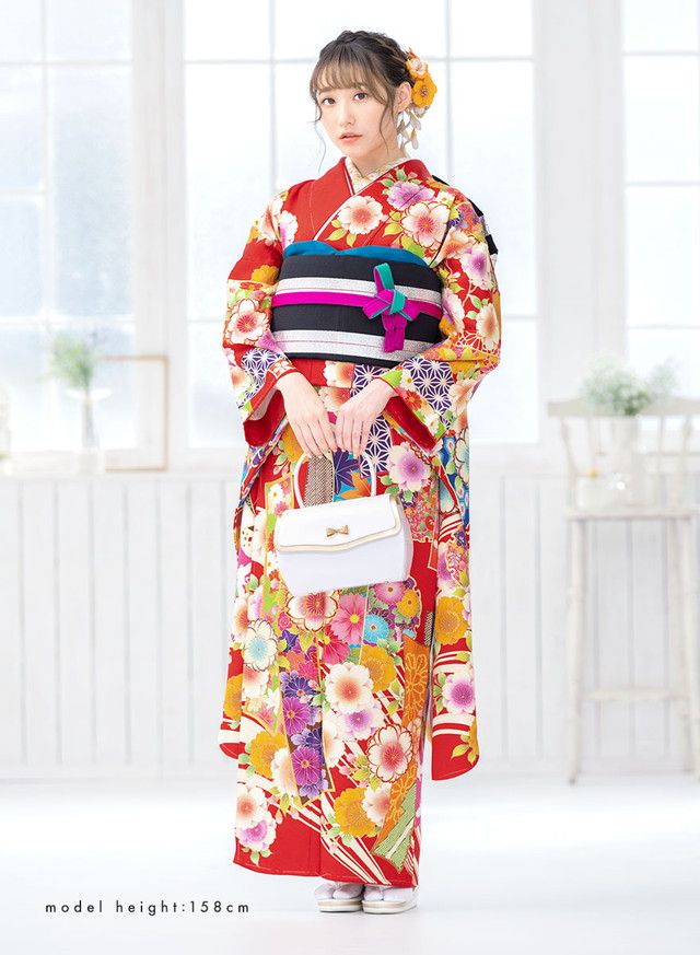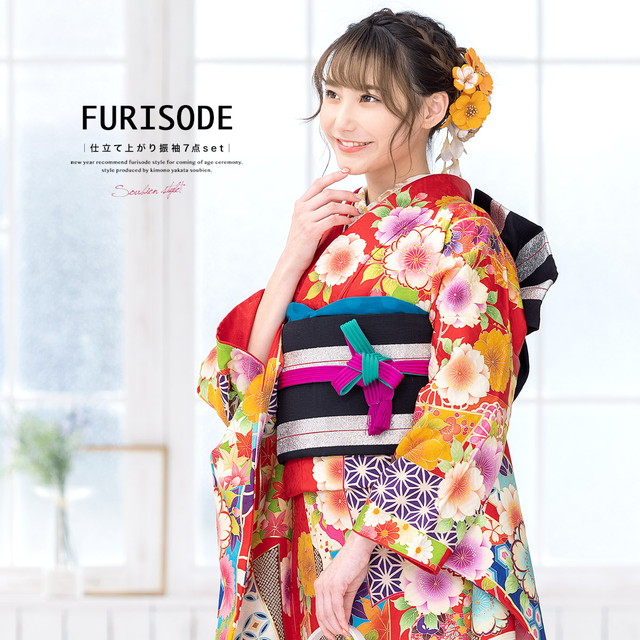 ※こちらの商品の内容は【振袖・帯・帯揚げ・伊達衿(重ね衿)・帯締め・半衿・長襦袢】の7点セットです。その他のアイテムは付属しておりません。