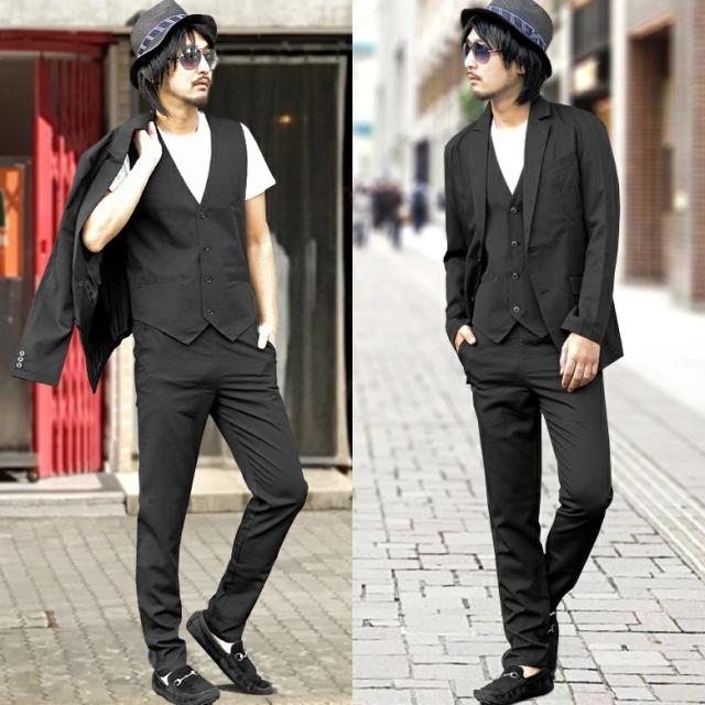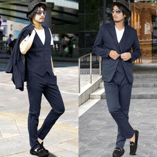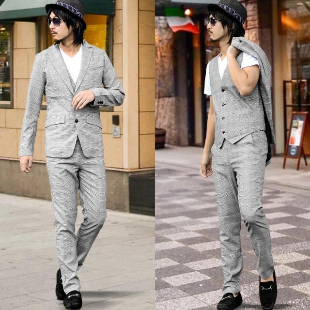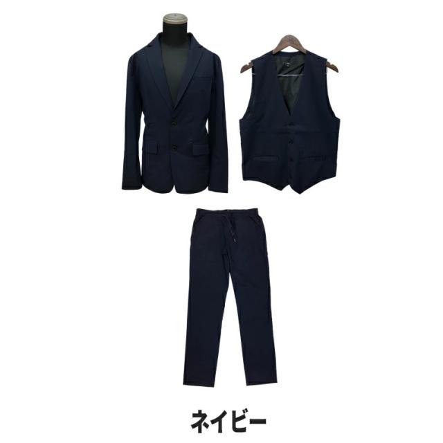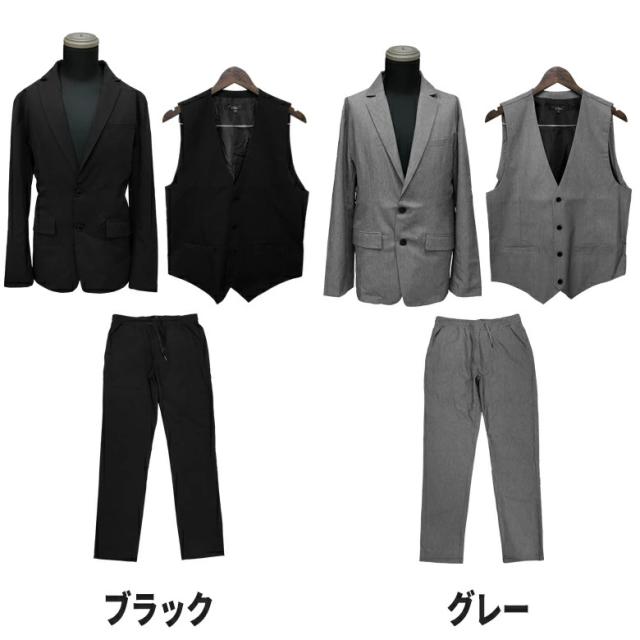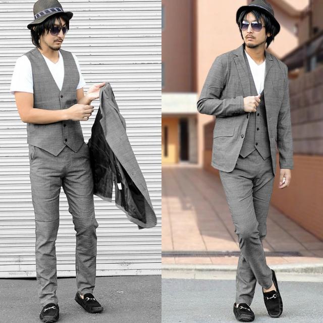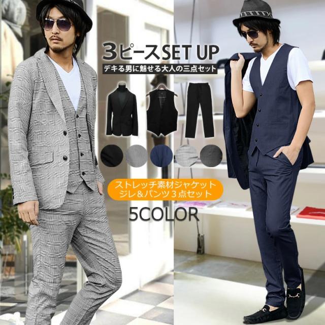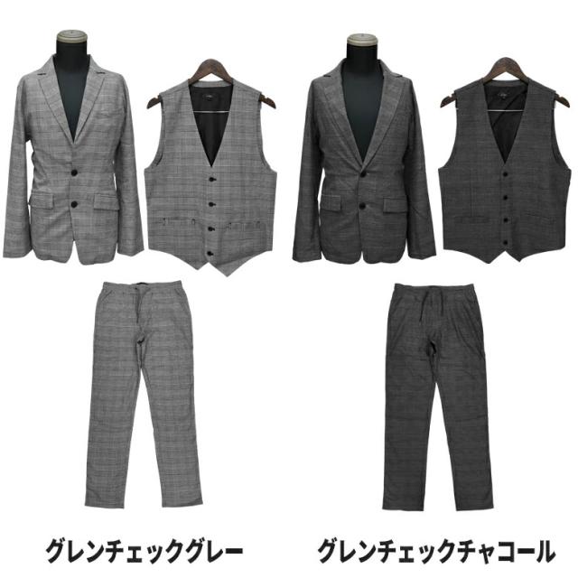 【閉店セール】ストレッチ3ピースセットアップスーツ 913s9309-3p このセットで上級コーデが完成!カジュアルにもフォーマルにも![送料無料]3ピース 上下セット セットアップ アンサンブル ストレッチ TR素材 スーツ ブラック グレー ネイビー グレンチェック