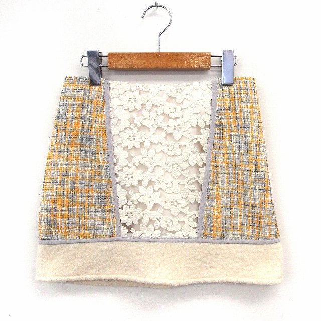 【中古】マーキュリーデュオ MERCURYDUO スカート ミニ タイト ツイード レース バックジップ S イエロー /ST31
