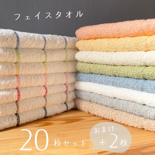 [1月発送]2枚おまけ付き!日本製 フェイスタオル 20枚セット (ボーダーライン) 泉州 国産 タオル セット 240匁 中厚 まとめ買い 普段使い デイリー やわらかい 送料無料
