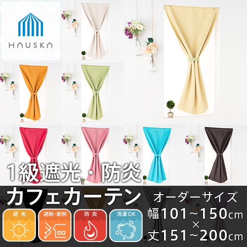 カーテン カフェカーテン 遮光 防炎 オーダー 小窓用 1級遮光 遮熱 断熱 無地 シンプル 北欧 「HAUSKA」 全48色 幅101-150cm 丈151-200cm