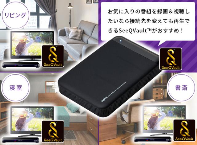 ※SeeQVault(TM)対応の外付けHDDをブルーレイレコーダーで使う場合、外付けHDDにはテレビ番組を直接録画できず、レコーダー側の内蔵HDDに録画したのち、SeeQVault(TM)対応のHDD側にダビングする必要があります。