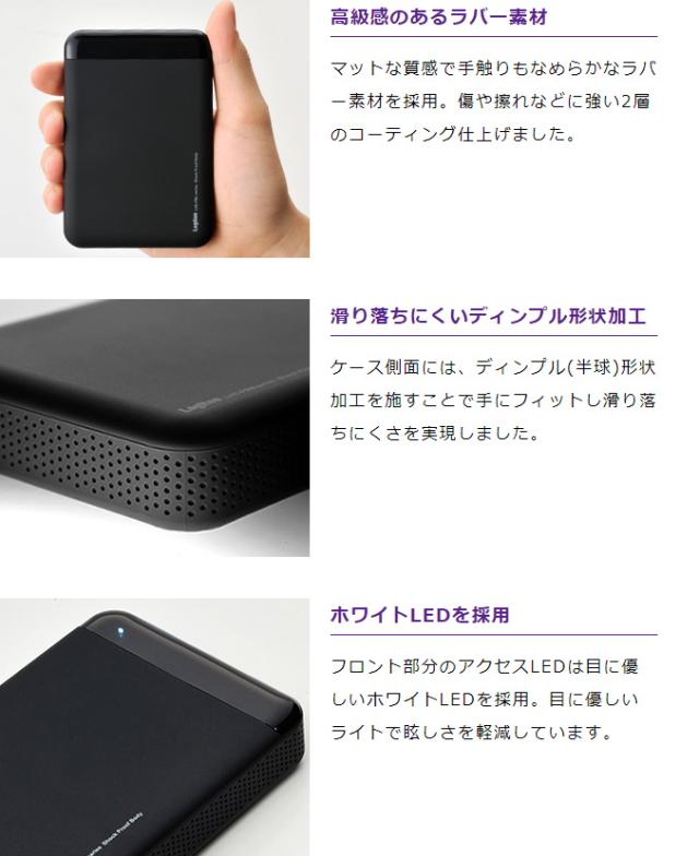 SeeQVault対応 外付け HDD テレビ録画 AC電源不要 ポータブルHDD 2TB 2.5インチ 小型 USBケーブル付 USB3.2 (Gen1) ロジテック LHD-PBMB20U3QW