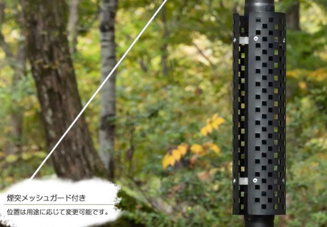 ■注意事項/※屋外用のストーブです。屋内・テント内・換気の悪い所で使用しないでください。本製品を目的以外に使用しないで下さい。組み立ての際、指・手等のケガに注意してください。また、金物ですので角等でケガ等しないように注意してください。本製品は必ず平坦な場所で使用してください。危険な場所(悪天候時・河川敷等)、他人に迷惑をかける恐れのある場所では使用しないでください。燃えやすいものを燃焼中に本製品の近くへ置いたり、近付けたりしないでください。火災の原因になります。また、燃焼中は本体周辺の温度が上昇しますので十分ご注意ください。燃焼中・消火直後は、本体がかなり熱くなります。大変危険ですので、素手で触れる・移動・高さ調節しないでください。煙突は必ずロープとペグ(付属してません)で固定してください。