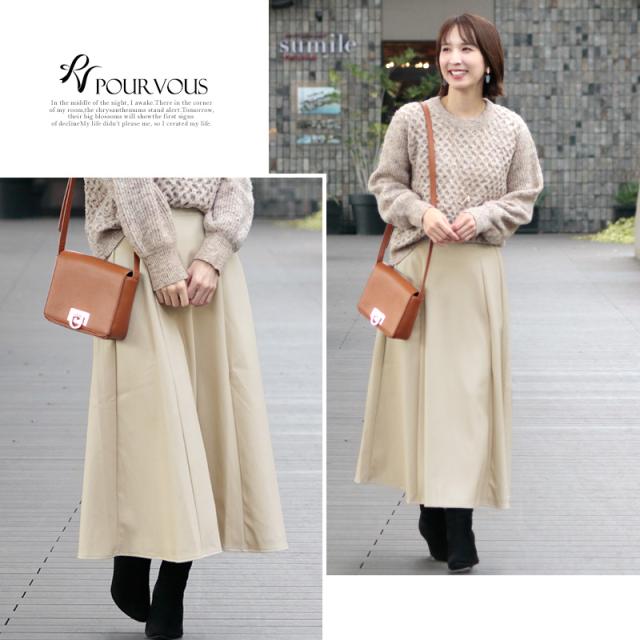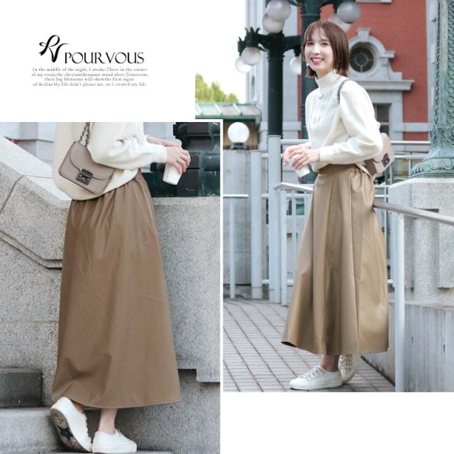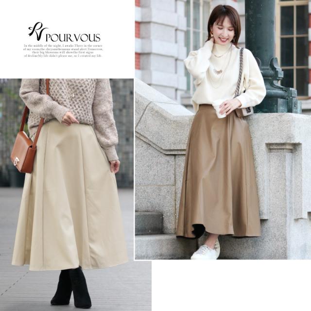 548202071 スカート レディース レザー ボトムス 女の子 ロング ロングスカート ウエストゴム 無地 マキシスカート マキシ丈 マキシ フレア フレアスカート ロング丈 フェイクレザー レザースカート 大きいサイズ 着回し 着やせ 春 夏 秋冬 20代 30代 40代 体型カバー 冬