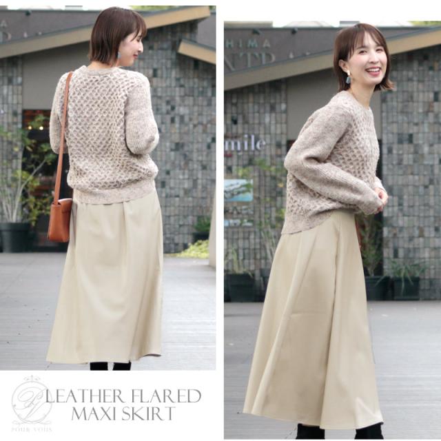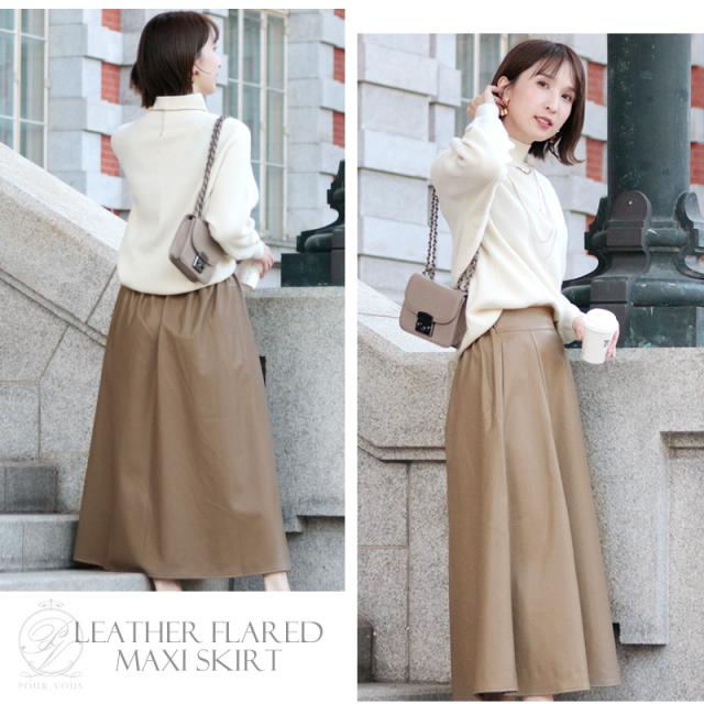 レザーフレアマキシスカート【548202071】 20代・30代・40代・50代ボトムス・レディース・カジュアル・ロング・ミモレ丈・膝丈・ウエスト・ゆったり・コーデ・フレア・シンプル・タイト・台形・薄手・厚手・無地・刺繍・花柄・可愛い・キレイめ・着やせ・新作・レース・上品・セットアップ・体型カバー・スタイルアップ・小さいサイズ・3Lや4L・・即日発送・送料無料・オフィス・ワーク・オールシーズン・デイリー・普段着・オケージョン・セミフォーマル・婚活・顔合わせ・同窓会・お呼ばれ・食事会・謝恩会・親族・七五三・お宮参り・冠婚葬祭・弔事・女子会・デート・入学式・卒業式・入園式・ママ