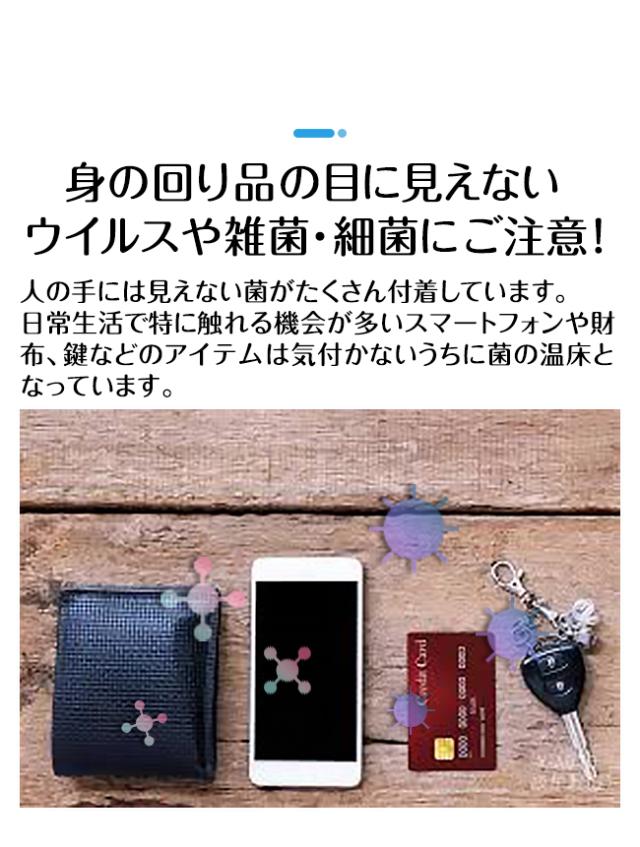 | 1.ご使用前に必ずこの取扱説明書をよくお読みいただき、正しくお使いください。 2.強い紫外線であるUV- Cライトの光を直接目で見たり、皮膚にあてると人体に悪影響を及ぼす場合があります。 ライトの光を直視したり、皮膚にあてたりしないでください 。3.子供の手の届くところで使用したり、保管しないでください。 4.水につけたり、浴室や湿気の多い場所で使用しないでください。 感電・ショート・火災の原因になる恐れがあります。 5.本製品を改造・分解しないでください。感電やケガをする恐れがあります。 6.本来の用途以外には使用しないでください。 |