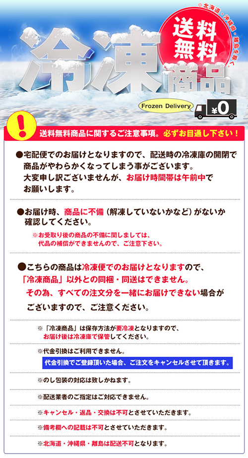●こちらの商品は冷凍便でのお届けとなりますので、【冷凍商品】以外との同梱・同送は
