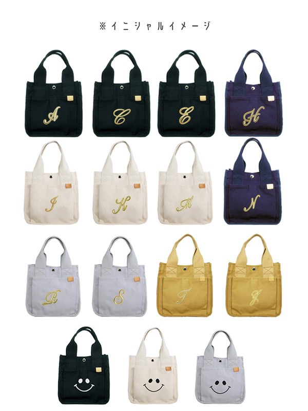 ※お選びいただけるイニシャルは、刺繍イニシャル・刺繍スマイル 又は イニシャルバッグチャームのどちらかとなります。