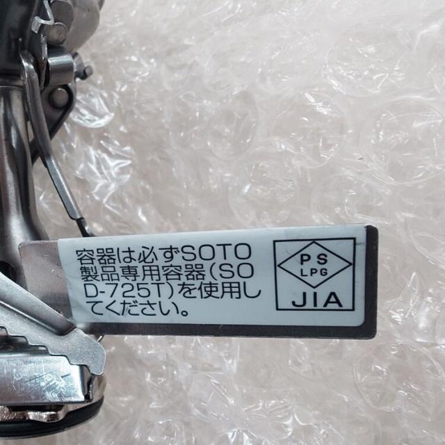 仕様:発熱量/3.0kW(2600kcal/h)、使用時間/約1.5時間(SOD−725T1本使用時)、約0.7時間(SOD−710T1本使用時)、使用容器/新富士バーナー製品、SOTO製品専用容器、点火方式/圧電点火方式