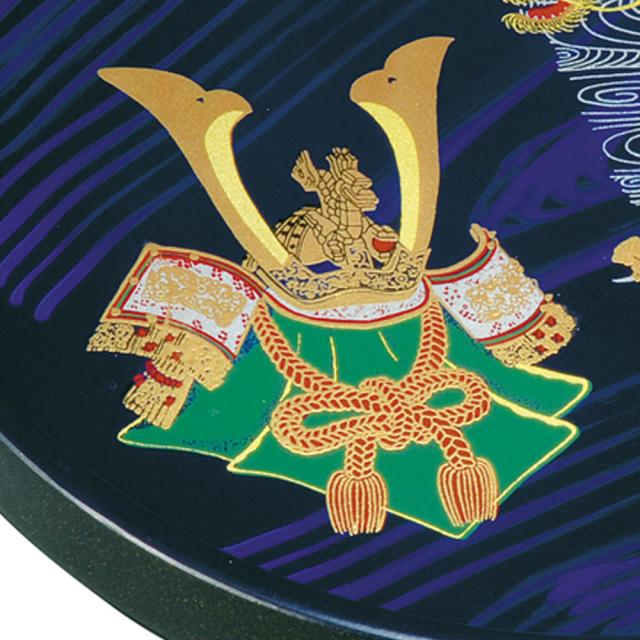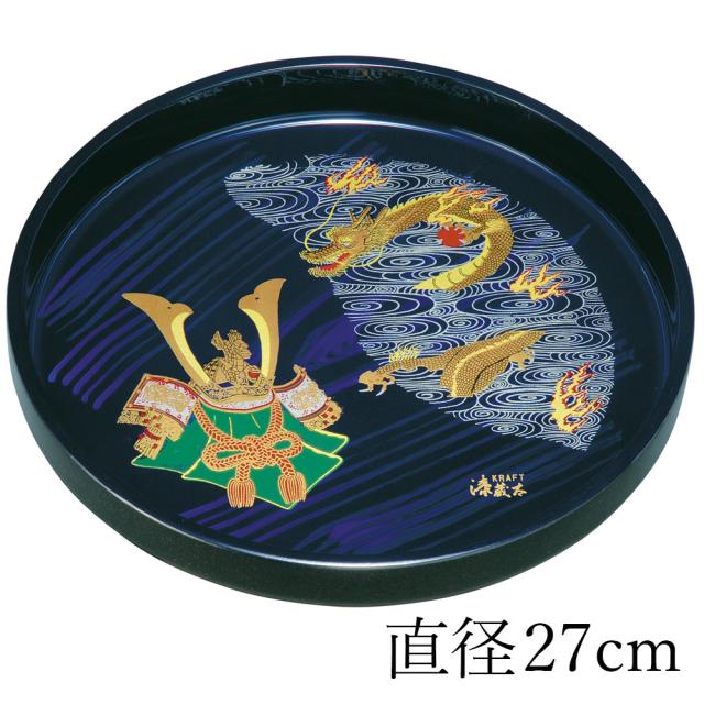 紀州塗り お盆 トレー 9寸 27cm 丸盆 青杢目 雲龍兜 和風 和室 端午の節句 木目調 トレイ おぼん 日本製 k_name