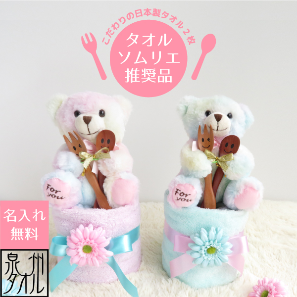 【出産祝い 名入れ】男の子 女の子 泉州 タオル フェイスタオル パステル くま ぬいぐるみ 3点セット 赤ちゃん お祝い 名入れギフト ぬいぐるみ 出産記念 かわいい おすすめ