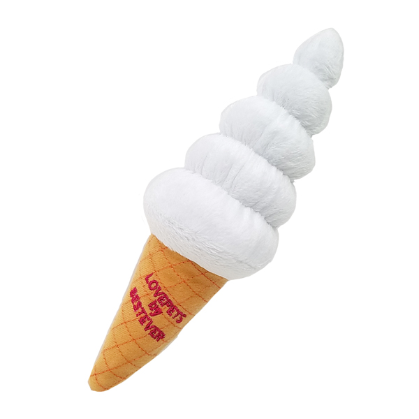 真っ白なソフトクリーム型のぬいぐるみおもちゃ。