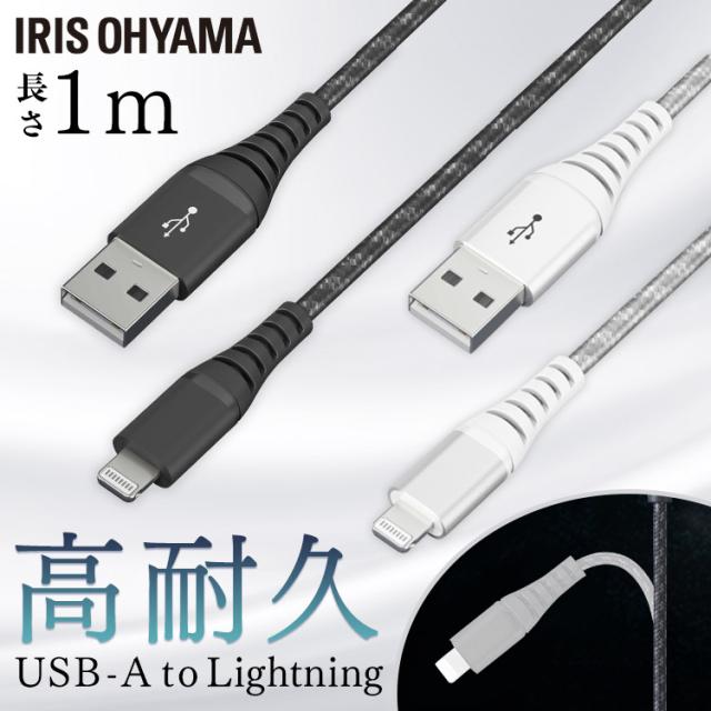高耐久Lightningケーブル 1m ICAL-C10 【メール便】 全2色 高耐久Lightningケーブル ライトニングケーブル Lightningケーブル 高耐久 Type-A USBType-A USB ケーブル 高耐久ケーブル 1m アイリスオーヤマ