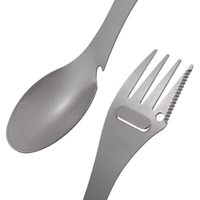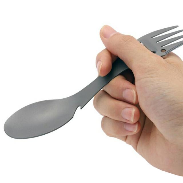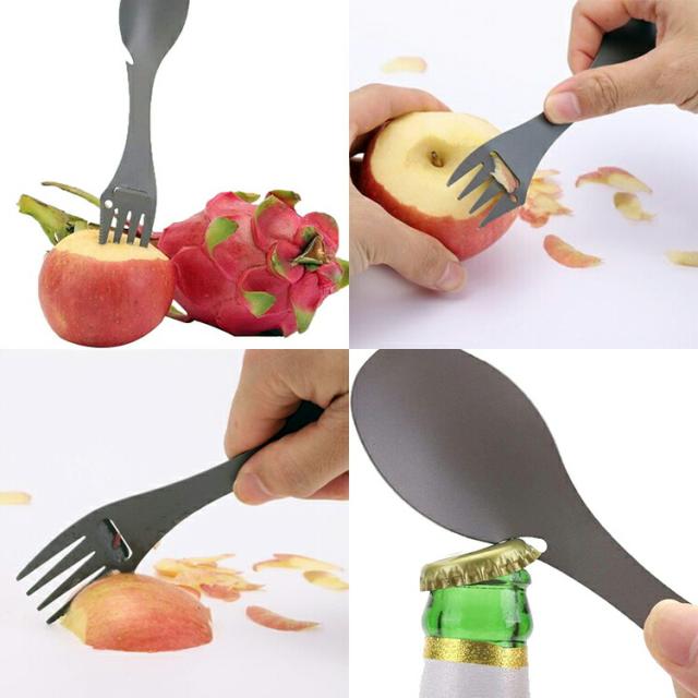 1本5役 マルチスプーン スプーン/フォーク/ミートナイフ/ピーラー/栓抜き カラビナ付 携帯に便利 アウトドア用カトラリー TSF3IN1