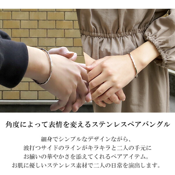 (ステンレスアクセサリー サージカルステンレス 医療用ステンレス 金属アレルギー対応 アレルギーフリー ペア パートナー 彼氏 彼女 恋人 カップル シンプル 定番 キラキラ 華やか 上品 大人 綺麗 きれい シンプルバングル 細め 華奢)