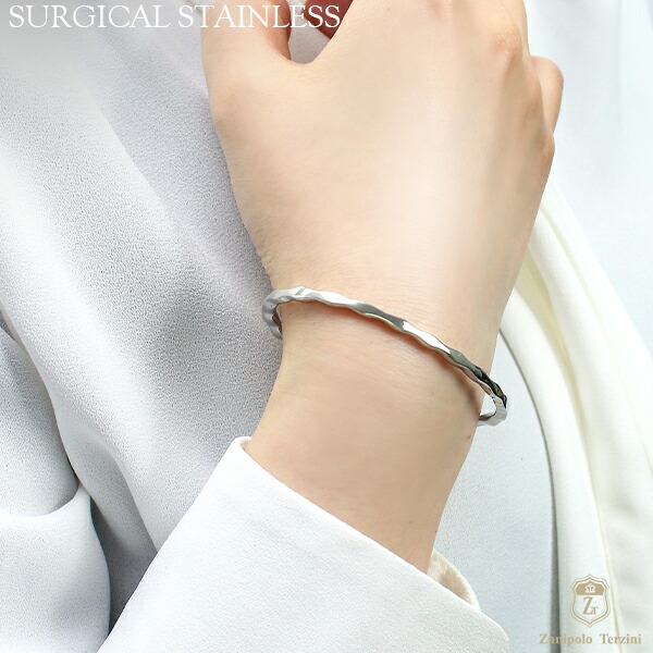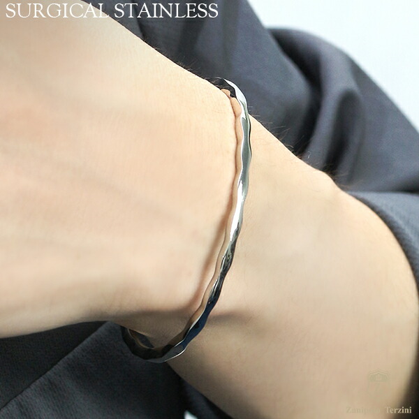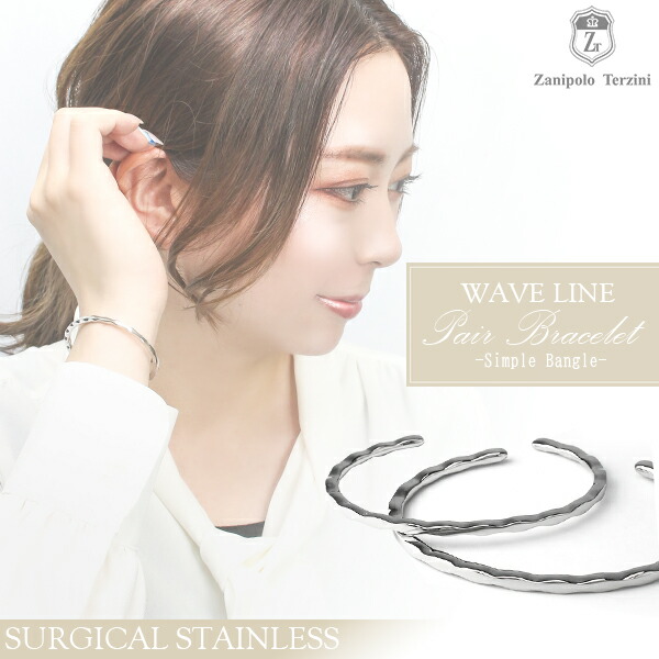 ザニポロタルツィーニ サージカルステンレス ウェーブライン ペアバングル ペアブレスレット ステンレスアクセサリー お揃い 金属アレルギー