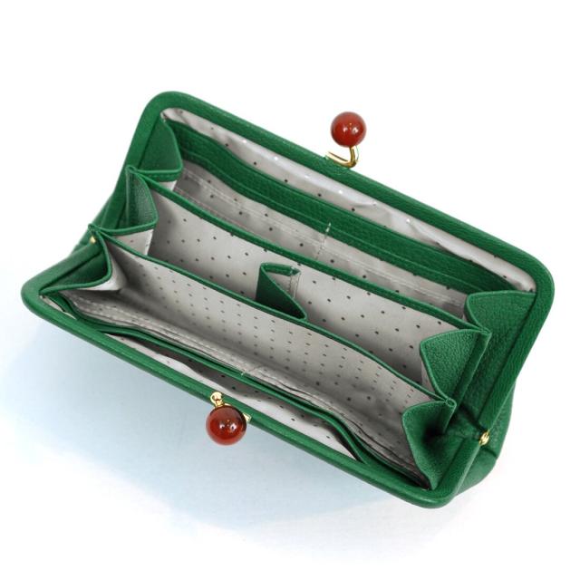【本革 レザー】ペルケ ワンステップで中身が見渡せる使いやすい長財布 アクリル玉がま口長財布