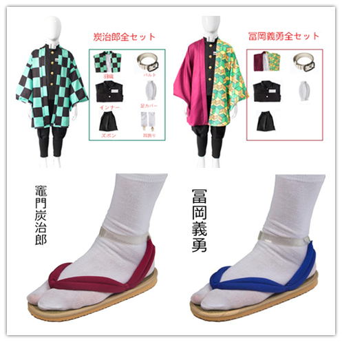 子供用 鬼滅の刃 下駄付き 炭治郎 禰豆子 義勇 善逸 胡蝶しのぶ 栗花落カナヲ 煉獄杏寿郎 甘露寺蜜璃 伊黒小芭内 時透無一郎 コスチューム