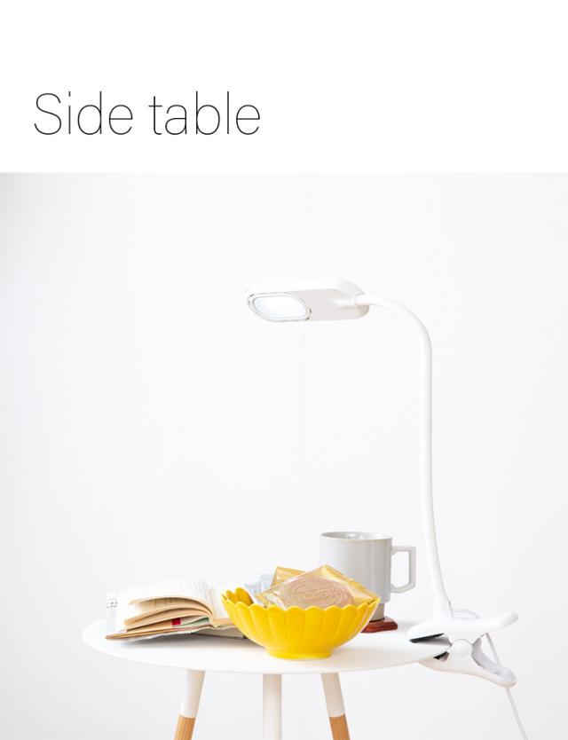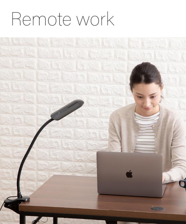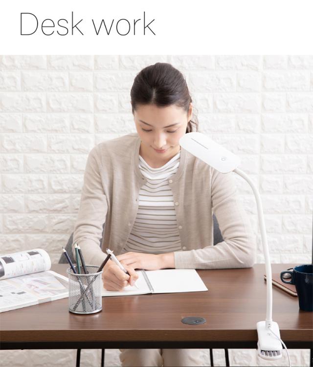 クリップ式(滑り止め付き)、3段階調色(白色・昼光色・電球色)、無段階調光、タッチセンサー、フレキシブルアーム