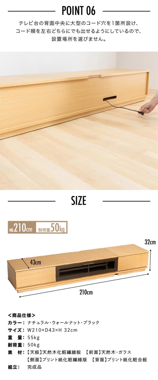 ★クーポンあり★ テレビ台 完成品 55型 60型 65型 大型テレビ台 幅210 ロータイプテレビボード 前面ガラステレビ台 T-KYTV210 全4色テレビ台テレビボード ローボード AVボード 幅210 210cm おしゃれ シンプル