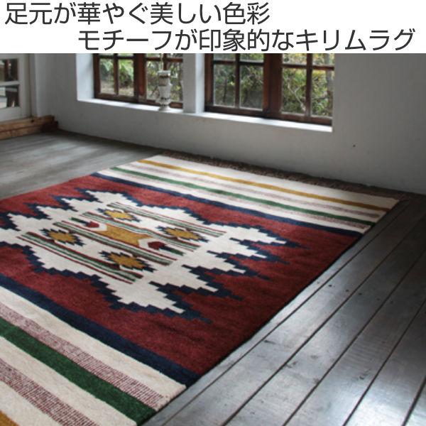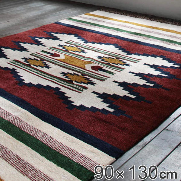 ラグ キリムラグ ラグマット 90×130cm TTR-105C ( カーペット 絨毯 マット コットン オールシーズン 幾何学柄 フリンジ付き 洗える 手洗い 床暖 ホットカーペット 対応 おしゃれ )