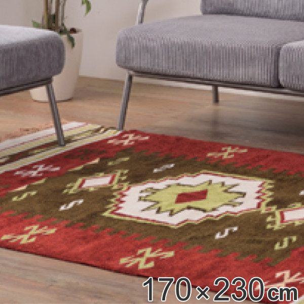 ラグ キリムラグ ラグマット 170×230cm TTR-107E ( カーペット 絨毯 マット コットン オールシーズン 幾何学柄 フリンジ付き 洗える 手洗い 床暖 ホットカーペット 対応 おしゃれ )