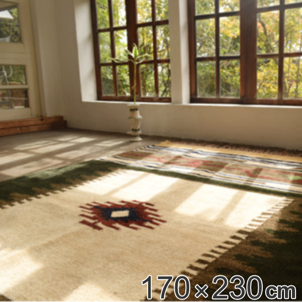 ラグ キリムラグ ラグマット 170×230cm TTR-107A ( カーペット 絨毯 マット コットン オールシーズン 幾何学柄 フリンジ付き 洗える 手洗い 床暖 ホットカーペット 対応 おしゃれ )
