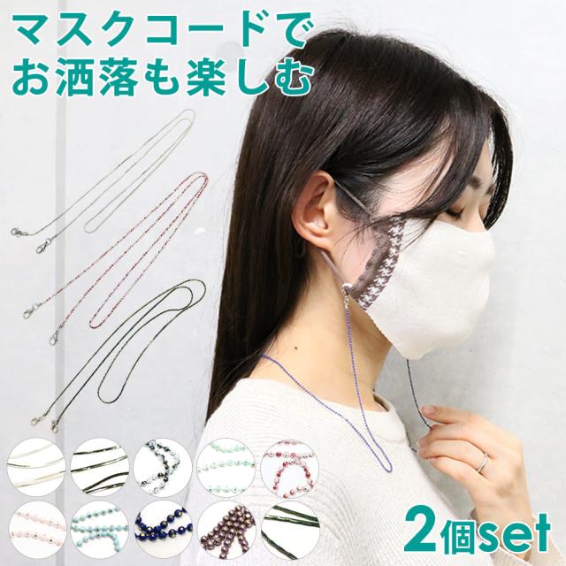 マスクコード 2個 セット ネックストラップ マスクストラップ マスク首掛け マスク紐 パール ビーズ チェーン おしゃれ かわいい 紛失防止 紛失 持ち運び スタイル SNS ファッション マスク用アクセサリー レディース 大人 女子 2本 TN-CDGL