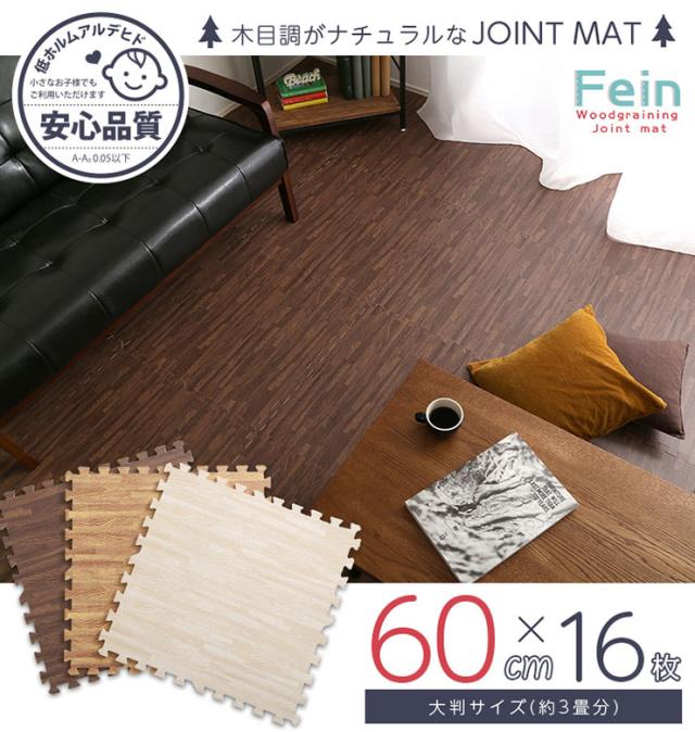 サイドパーツ付き ナチュラルな木目調ジョイントマット 16枚セット(大判60cm)安心の低ホルムアルデヒド、防音、保温 Fein(ファイン) 3色対応