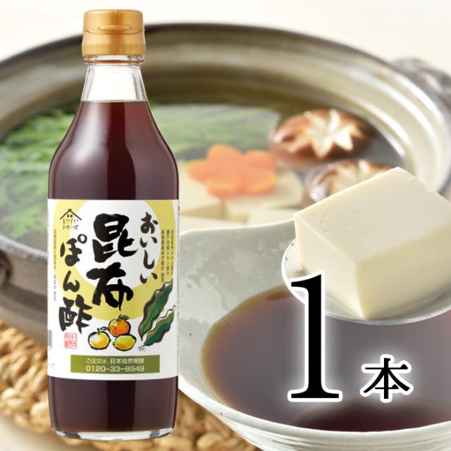 おいしい昆布ぽん酢 日本自然発酵 360ml×1本 ポン酢 調味料 柑橘 昆布ぽん酢 ポン酢 北海道産 おいしいポン酢 国産 瀬戸内レモン 温州みかん 高知県産ゆず 柑橘果汁 日高昆布