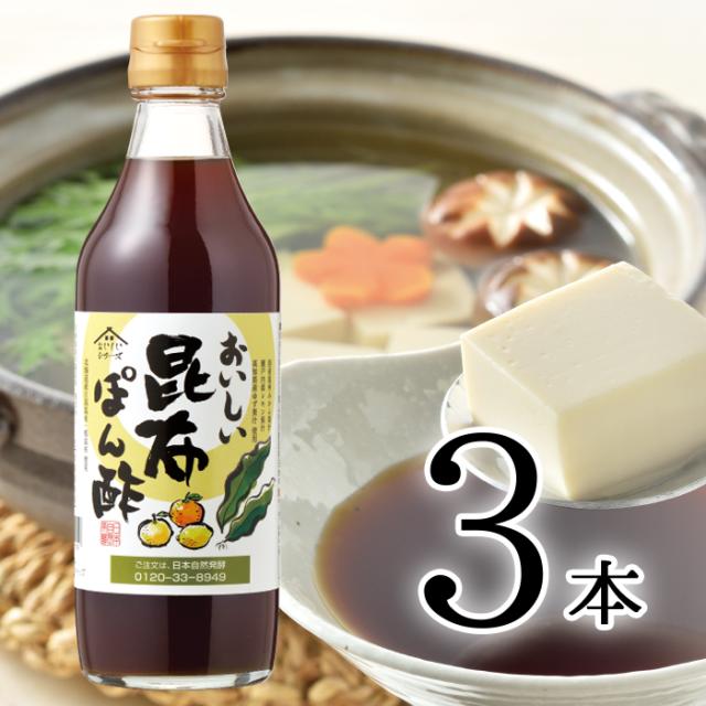 おいしい昆布ぽん酢 日本自然発酵 360ml×3本 ポン酢 調味料 柑橘 昆布ぽん酢 ポン酢 北海道産 おいしいポン酢 国産 瀬戸内レモン 温州みかん 高知県産ゆず 柑橘果汁 日高昆布