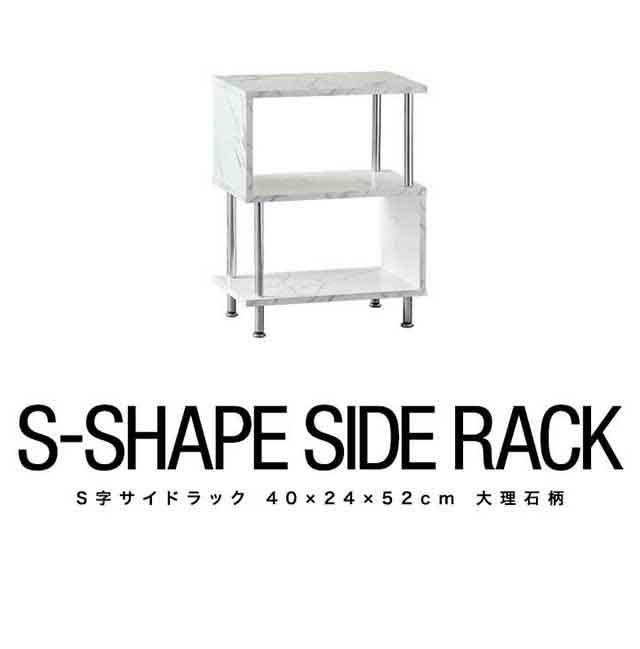 ラック S字 サイドラック 幅40cm 3段 サイドテーブル 収納棚 シェルフ おしゃれ ディスプレイラック オープンラック フリーラック 多目的ラック 本棚 マガジンラック 収納 間仕切り リビング収納 オープンシェルフ 北欧 大理石風 大理石調 送料無料