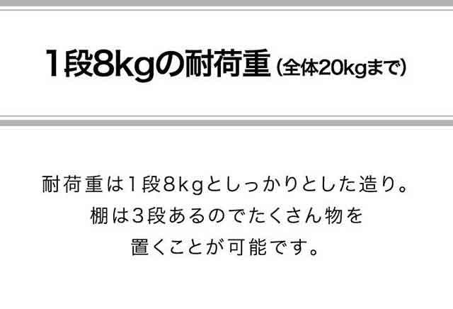 | 耐荷重: 1段あたり(約)8kg ※棚全体の耐荷重…(約)20kg |