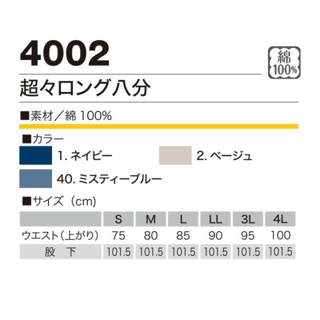 超々ロング八分 HOOH 4002 パンツ ニッカポッカ ズボン 鳶職 鳶服 作業服 作業着 村上被服 【S-3L】